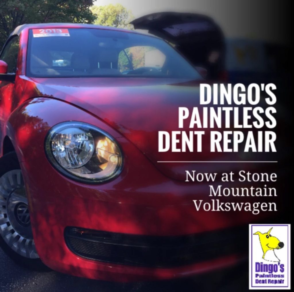 Dingo’s PDR, Atlanta’s Premier Dent Repair Service now partners with Stone Mountain Volkswagen, Atlanta’s Number One Volume VW Dealer. If you live in Snellville and want a quick estimate, simply stop by the Service Departmant and ask their knowledgeable Service Advisors. Heck, you don’t even need to drive a Volkswagen.